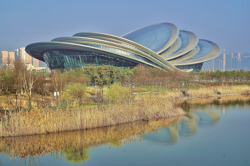 启东保利大剧院,位于江海南路与钱塘江路交叉口东北侧,总建筑面积约3.8万平方米。剧院外观仿若一只振翅欲飞的翩翩蝴蝶,与一旁的蝶湖湖面相得益彰,形成生动形象的立体互动画面。剧院内部整体设计思路突出“海的呼唤”主题,将“听涛起舞”、“乘风破浪”、“振翅飞翔”理念,完美融入共享大厅、大剧场、小剧场等不同功能空间设计,充分结合启东人文、自然环境特质和现代建筑语言,展现地域性、文化性和时代性的统一。